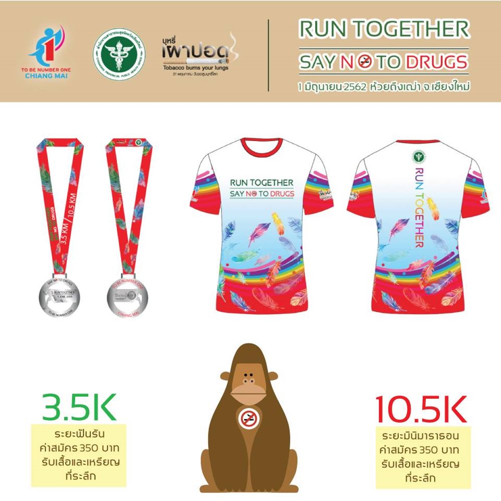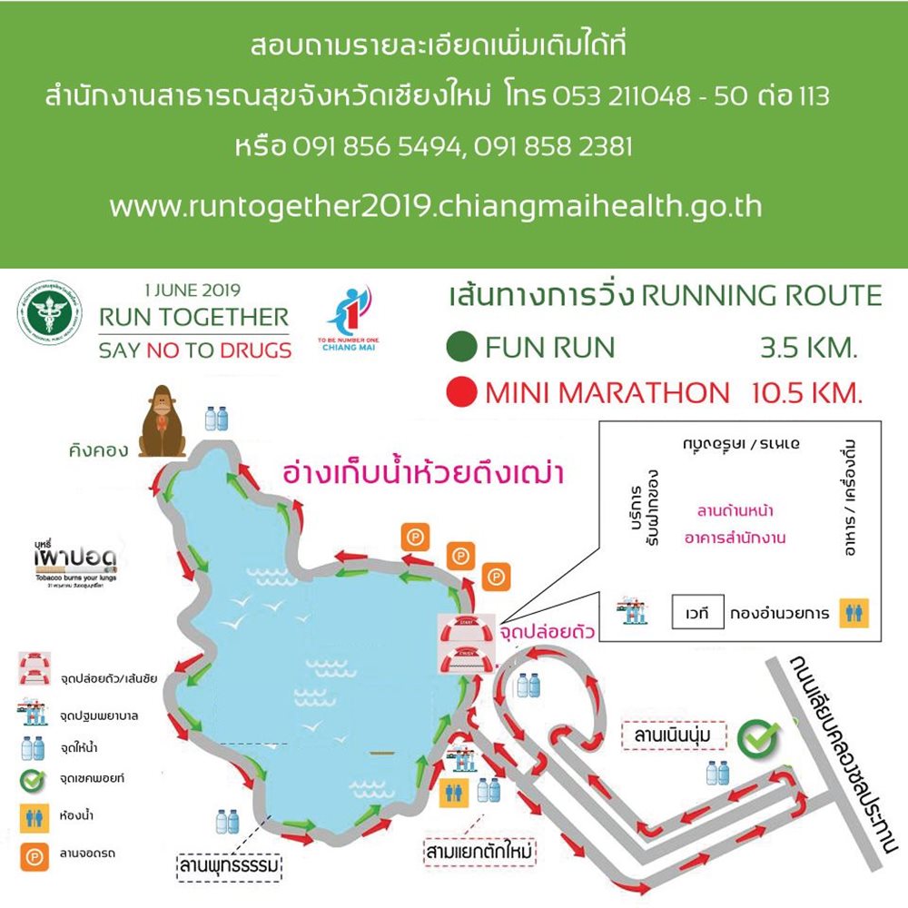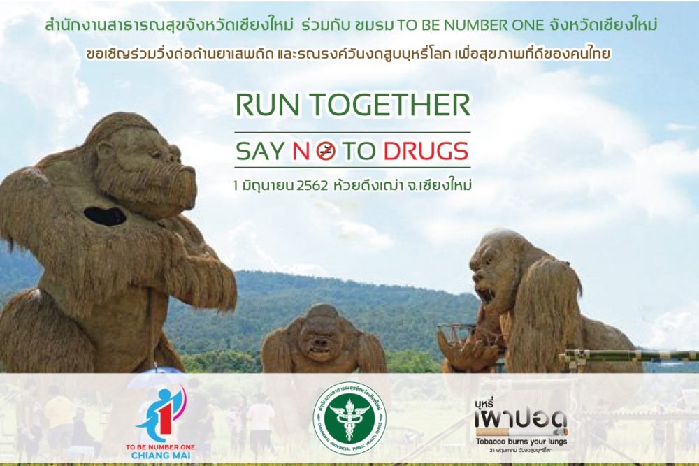 สำนักงานสาธารณสุขเชียงใหม่ ชวนร่วมวิ่ง “RUN TOGETHER” SAY NO TO DRUGS รณรงค์ต้านยาเสพติดวันงดสูบบุหรี่โลก ที่อ่างเก็บน้ำห้วยตึงเฒ่า 1 มิ.ย. 62