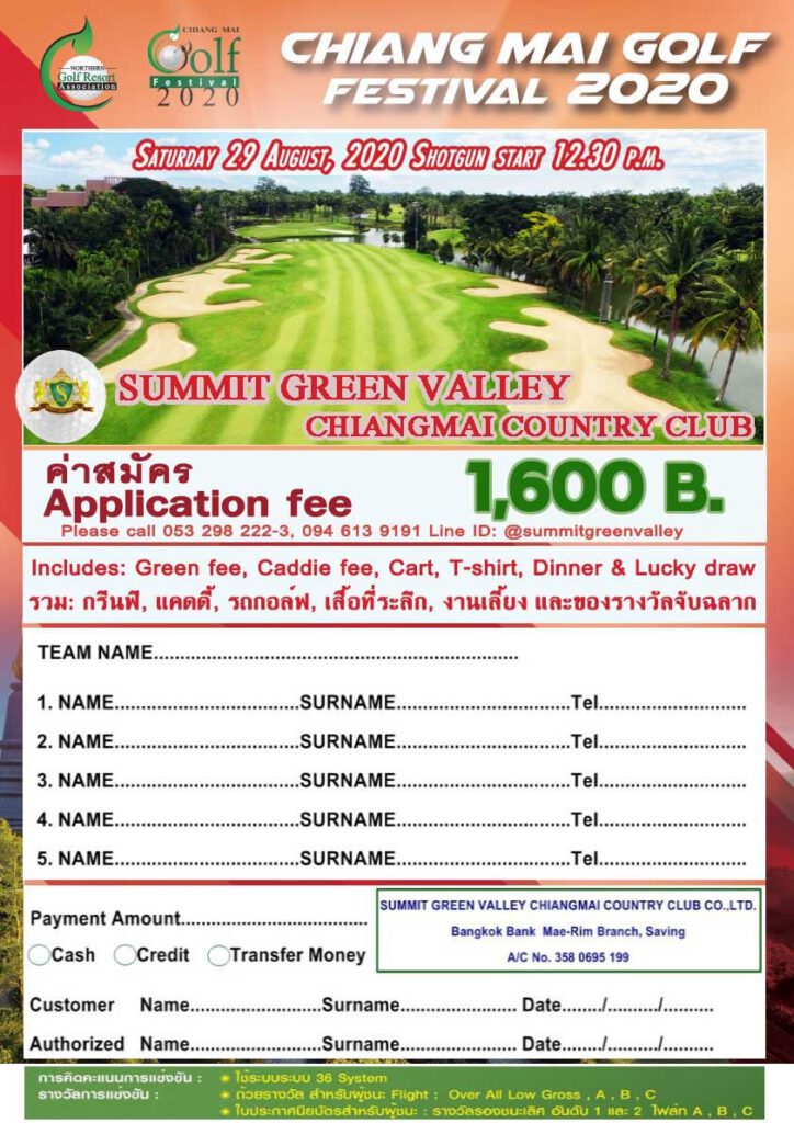 ทั้งนี้ ทาง สนามกอล์ฟ ซัมมิท กรีนวัลเล่ย์ เชียงใหม่ คันทรี คลับ แจ้งว่าจะรับสมัครในจำนวนจำกัด ผู้ที่สมัครและโอนค่าสมัครก่อนจะได้รับสิทธิ์เข้าร่วมแข่งขันก่อน