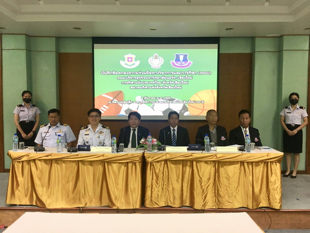 8 ธ.ค.63 นายสงค์ศักย์ คำดีรุ่งริรัตน์ ผอ.กกท.จ.เชียงใหม่ พร้อมด้วย ดร.ภูมิ ศรีสุข คณบดีคณะบริหารธุกิจ มหาวิทยาลัยนอร์ท-เชียงใหม่ และนายมนตรี หาญใจ นายกสมาคมกีฬาแห่ง จ.เชียงใหม่ ได้ร่วม ทำพิธีลงนามบันทึกข้อตกลงความร่วมมือทางวิชาการและการกีฬา (MOU) ระหว่าง คณะบริหารธุรกิจ มหาวิทยาลัยวิทยาลัยนอร์ท-เชียงใหม่ การกีฬาแห่งประเทศไทย จ.เชียงใหม่และสมาคมกีฬาแห่งจังหวัดเชียงใหม่ ซึ่งจะเป็นโครงการส่งเสริมให้นักกีฬาเข้ารับการศึกษาหรือเรียนต่อในคณะบริหารธุรกิจ ซึ่งมีทุนการศึกษาให้เรียนตามหลักสูตรของมหาวิทยาลัยนอร์ท-เชียงใหม่ และจะส่งเสริมจัดกิจกรรมกีฬาร่วมกันทั้งสามฝ่าย โดยได้ร่วมพิธีลงนามด้วยกัน ณ ห้องประชุมเล็ก อาคารที่พัก700 ปี สนามกีฬาสมโภชเชียงใหม่ 700 ปี จ.เชียงใหม่
