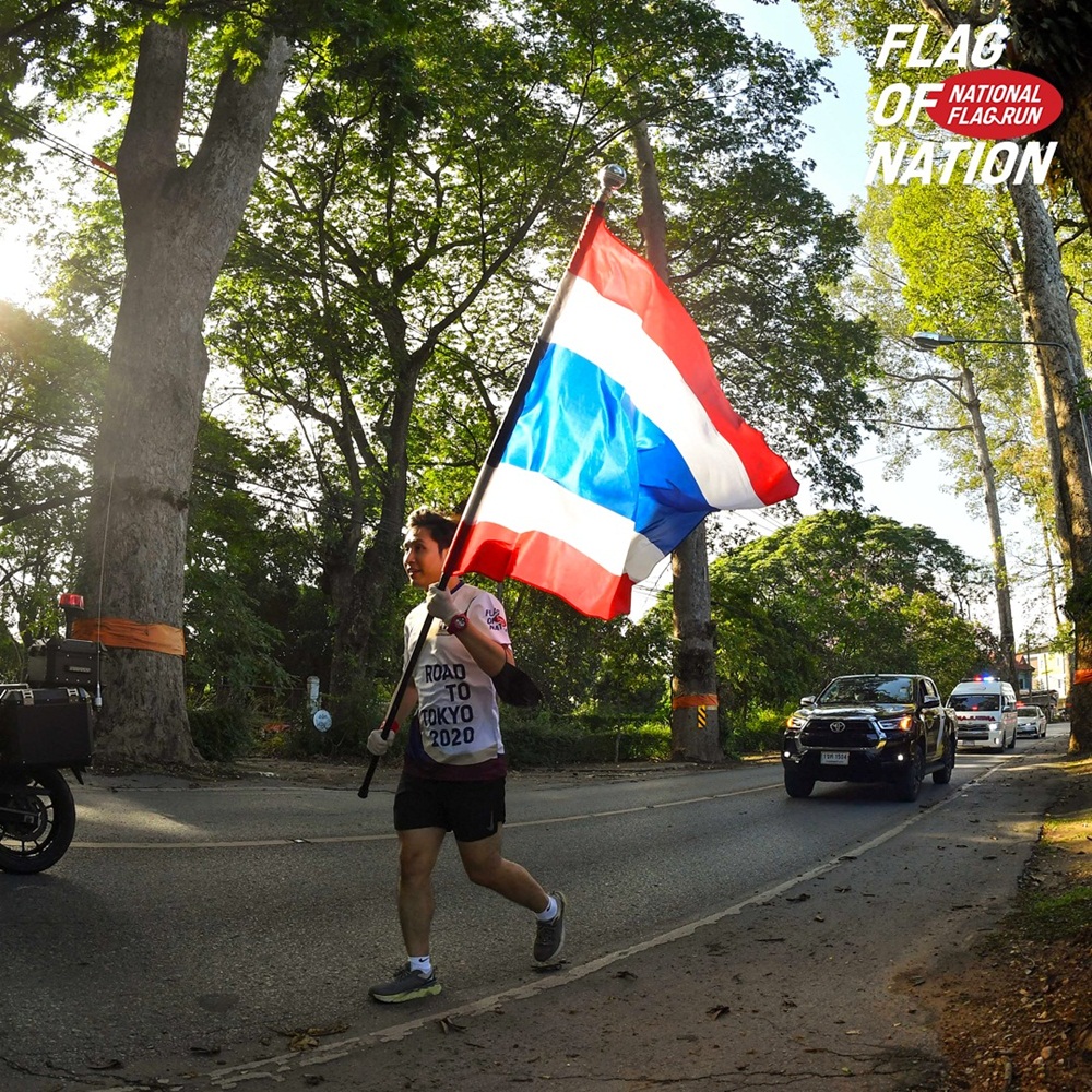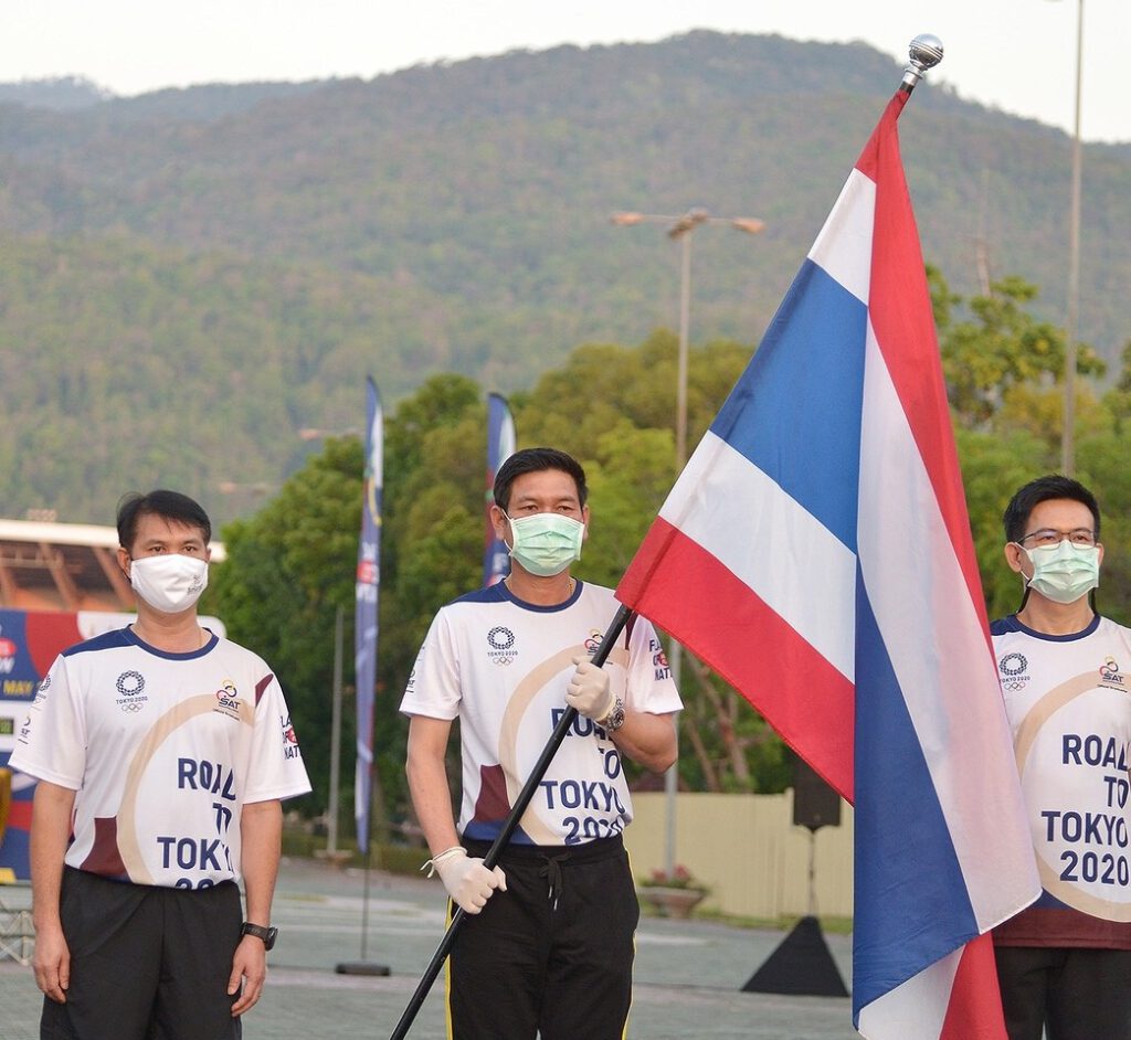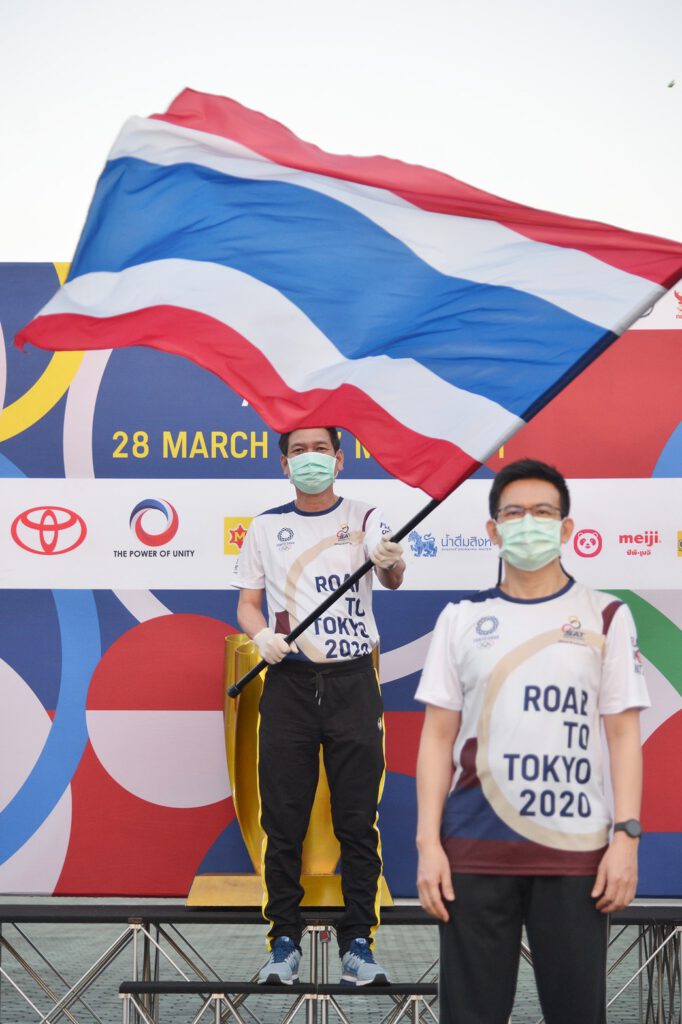 ทั้งนี้ กิจกรรม “วิ่งธงชาติไทย รวมใจสู่ชัยชนะ” เป็นกิจกรรมที่จัดขึ้นเพื่อส่งต่อกำลังใจให้ทัพนักกีฬาทีมชาติไทยไปแข่งขันกีฬาโอลิมปิกเกมส์ ครั้งที่ 32 ผ่านการวิ่งผลัดธงชาติไทย คนละ 1 กม. ต่อเนื่อง 61 วัน 35 จังหวัด รวมระยะทาง 4,606 กม. หรือเทียบเท่าระยะทางจากกรุงเทพฯ ถึง กรุงโตเกียว ประเทศญี่ปุ่น โดยมี สมรักษ์ คำสิงห์ วีรบุรุษเหรียญทองโอลิมปิกคนแรกของไทย วิ่งโบกสะบัดธงไตรรงค์เป็นคนแรก