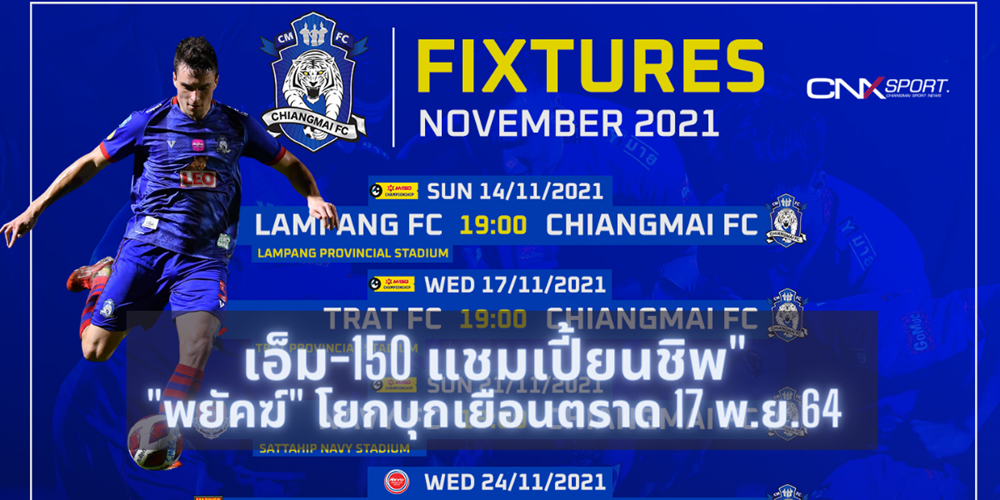 บริษัท ไทยลีก จำกัด และฝ่ายจัดการแข่งขันฯ แจ้งสลับโปรแกรมการแข่งขันฟุตบอลลีกอาชีพ รายการ “เอ็ม-150 แชมเปี้ยนชิพ” นัดที่ 14 คู่ระหว่าง เชียงใหม่ เอฟซี พบ ตราด เอฟซี โดยให้ตราด เอฟซี เป็นเจ้าบ้าน ในวันพุธที่ 17 พ.ย.64 แข่งขันเวลา 19.00 น. ที่สนามกีฬากลาง จ.ตราด เนื่องจากสนามกีฬาเทศบาลนครเชียงใหม่ ซึ่งเป็นสนามเหย้าของเชียงใหม่ เอฟซี ถูกใช้เป็นพื้นที่ติดตั้งโรงพยาบาลสนาม ขณะที่เกมรอบเพลย์ออฟ “รีโว่ ลีก คัพ” ระหว่าง นาวิกโยธิน ยูเรก้า เอฟซี กับ เชียงใหม่ เอฟซี ได้กำหนดการแข่งขันใหม่เป็นที่เรียบร้อยแล้ว